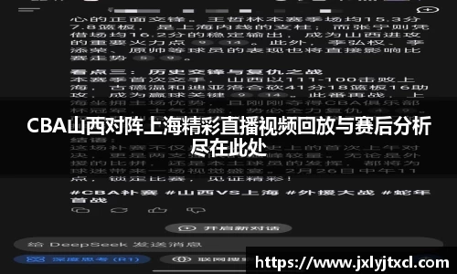 CBA山西对阵上海精彩直播视频回放与赛后分析尽在此处